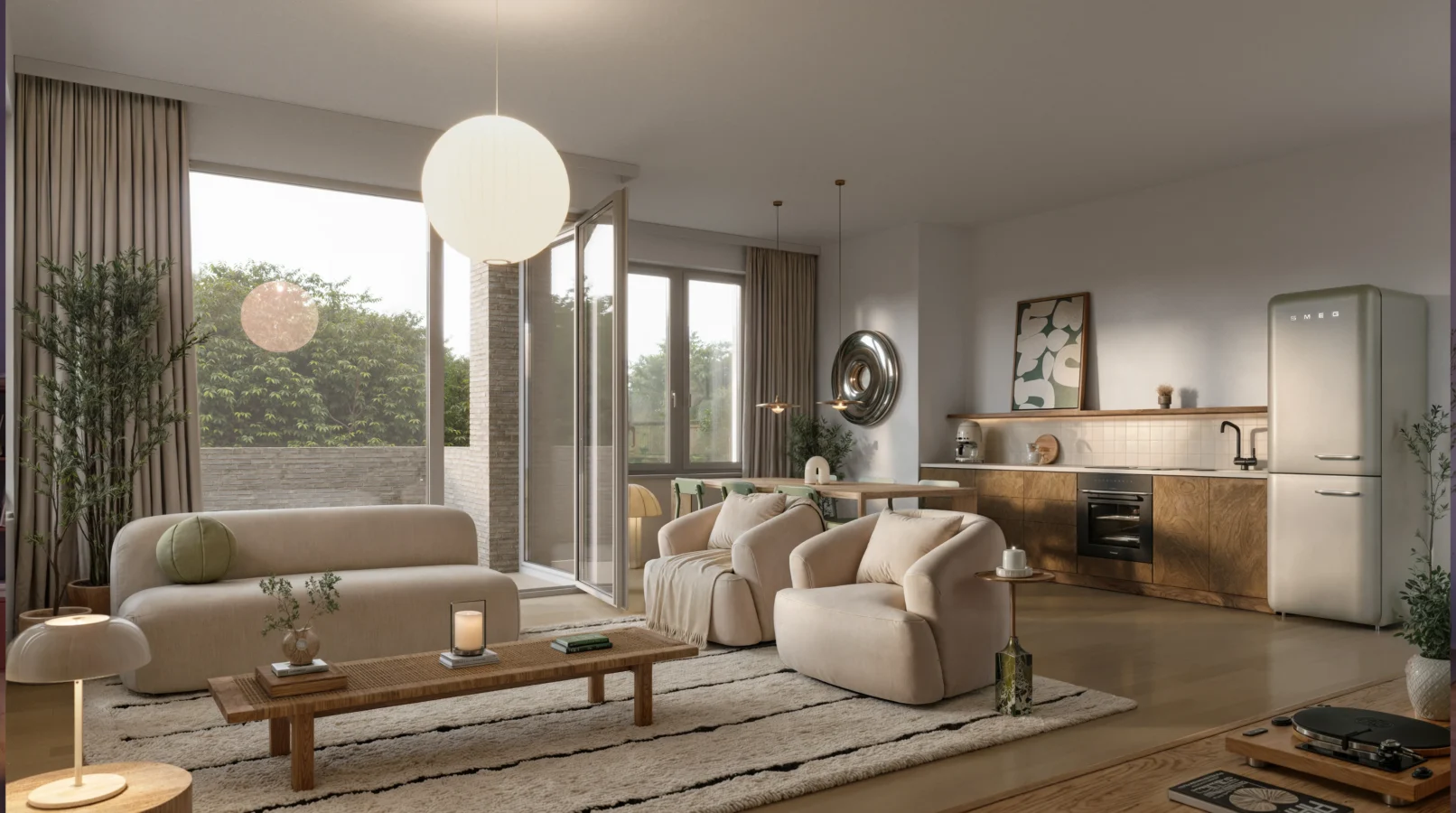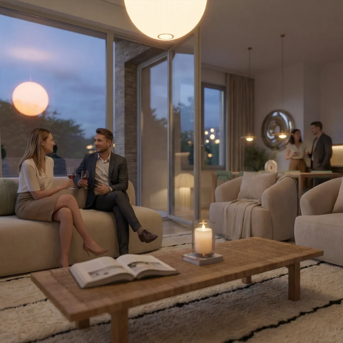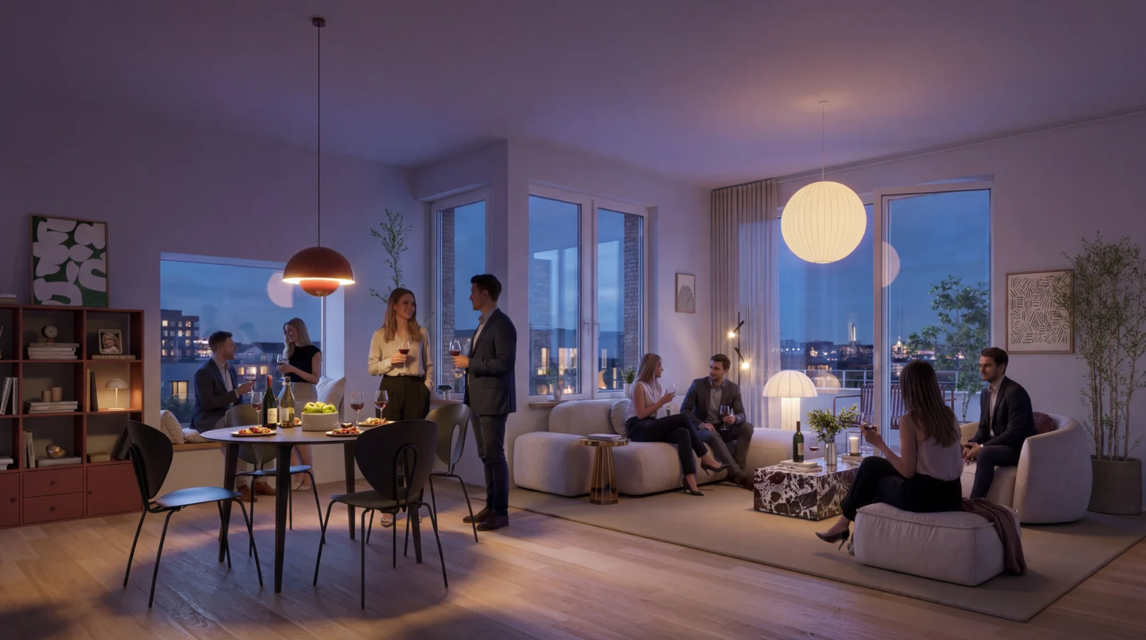 Each apartment is equipped with high-quality electrical installations and smart home systems, allowing intuitive control of lighting, climate, and energy usage. An underground parking garage provides convenient access for residents, while integrated bicycle storage areas with direct external access support modern, sustainable mobility.